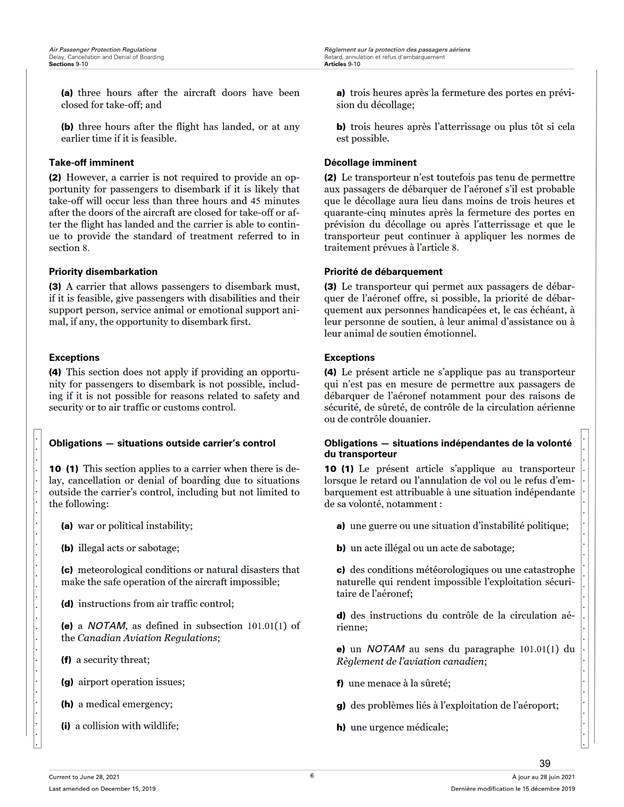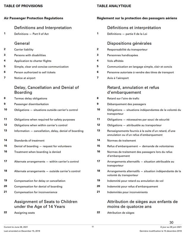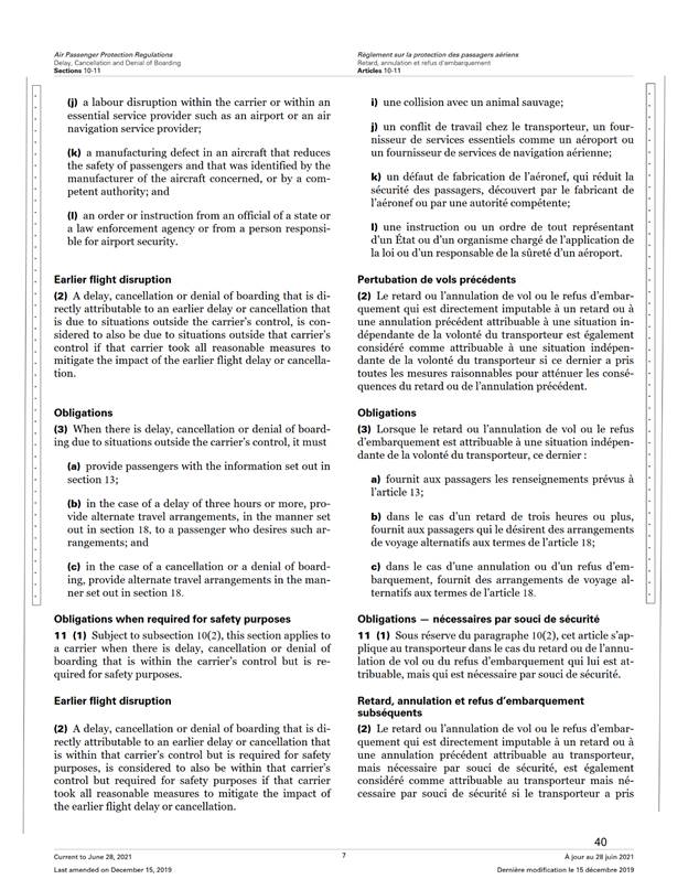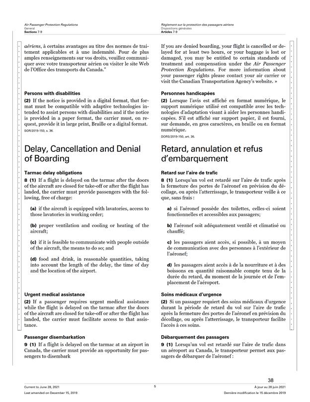 • Flight delays, cancellations and denied boarding (ss. 10-21);