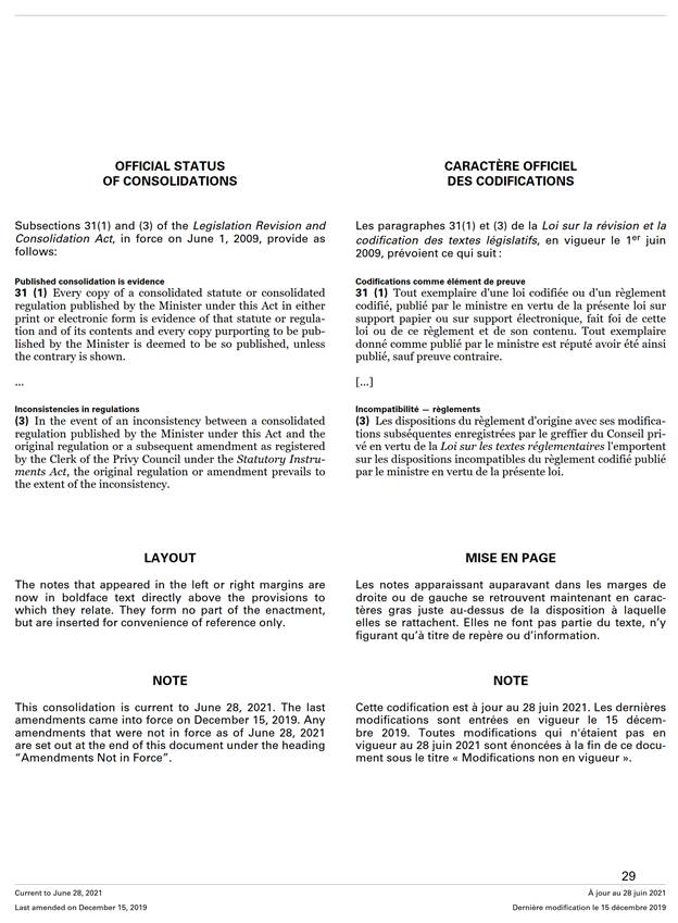 [16] The Regulations came into force on July 15, 2019, with the exception of sections 14, 19, 22, 35 and 36, which came into effect on December 15, 2019.