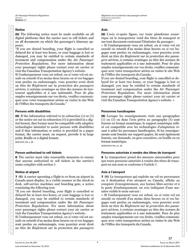 • Communication of passengers’ rights and recourse options (ss. 5-7);