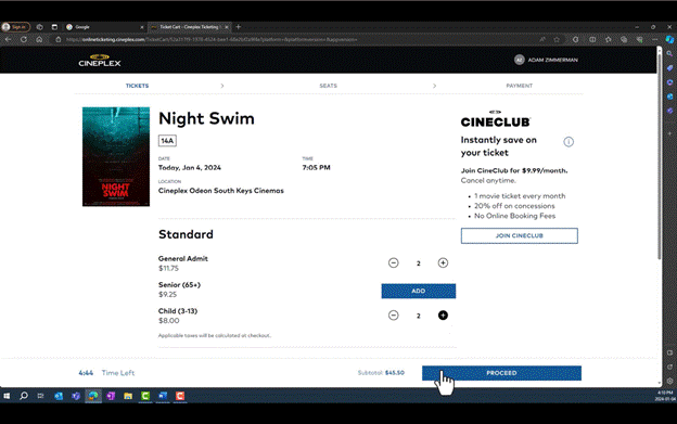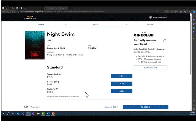 Appendix 2: Movie ticket purchase process on cineplex.com accessed through a computer